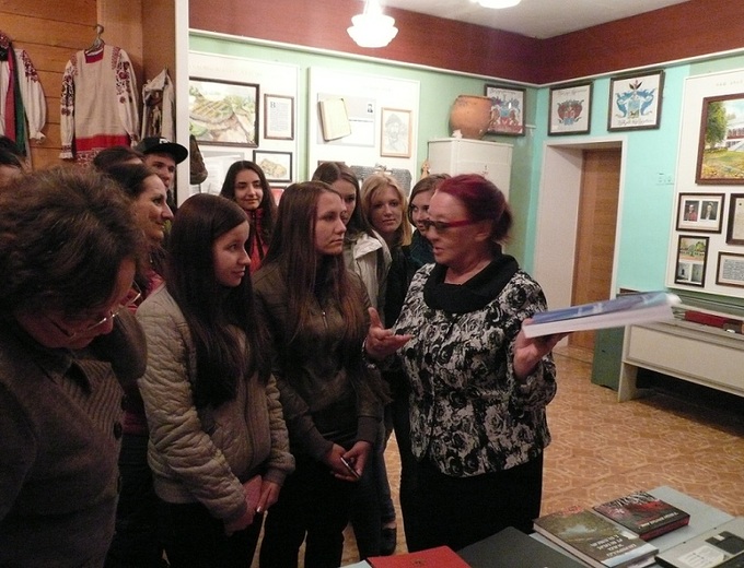 В музее можно увидеть уголок старой школы (скамья, парта с облупившейся краской, керосиновая лампа на краю парты и непременные изображения государя императора и святого-покровителя на стене) и документ, где скрупулезно зафиксированы действия властей по подавлению крестьянского восстания в окрестных селах в годы первой русской революции, с именами арестованных и упоминаниями карательных полков и дат их вызова в уезд.